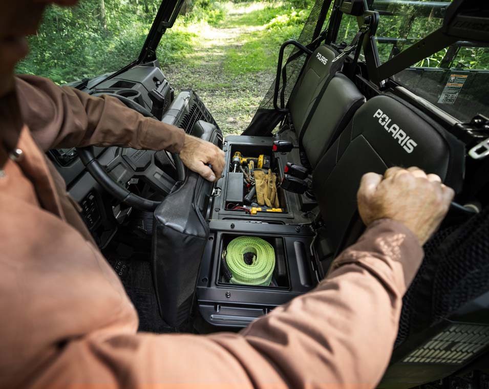 Sal de off-road el día entero, con cómodos asientos y espacio de almacenamiento integrado en la cabina para guardar tu equipo esencial.